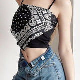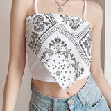 Y2k Tank Crop Top, Unique Overbust Womens Top, Retro Elegant Casual Printed Top