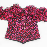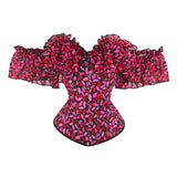 Red Lip Printed Overbust Corset, Bustier Lace up Corset